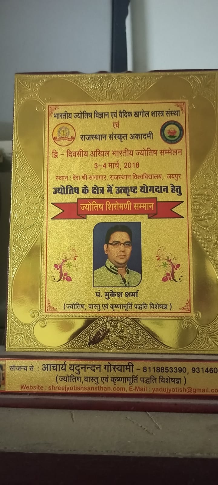 Astrologer Pt. Mukesh Sharma, you are greatly appreciated for your assistance with my